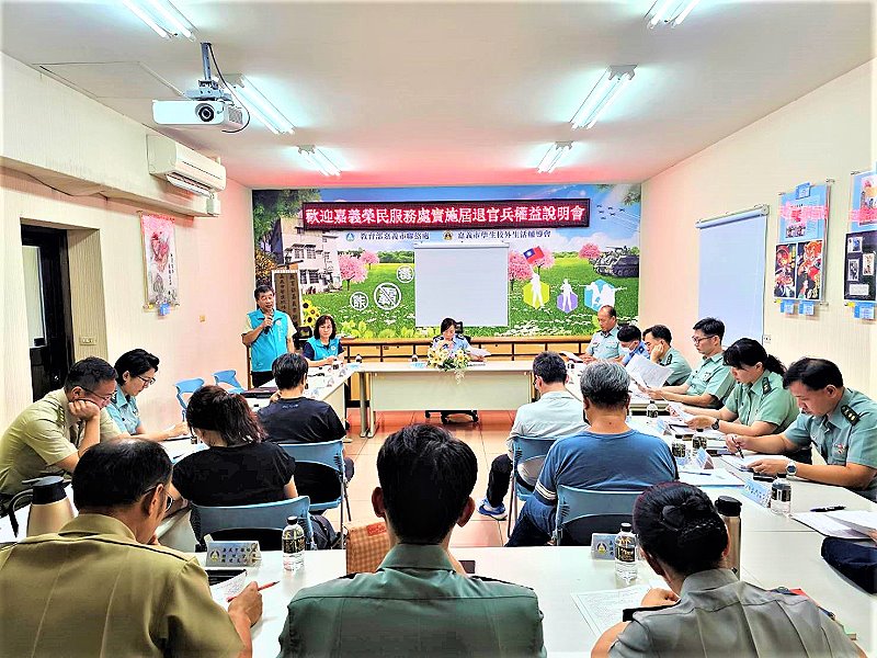 〔記者陳允得/嘉義市報導〕嘉義榮服處為協助即將退伍的軍訓教官做好退役後的職涯規劃,並瞭解退伍後的權益及就學、就業及職訓之輔導措施,9/25日首次進入教育部嘉義市聯絡處辦理屆退官兵權益說明會,詳細說明退役後相關輔導措施,並期能審慎思考職業轉銜,以確立自己生涯規劃,會場互動良好。
