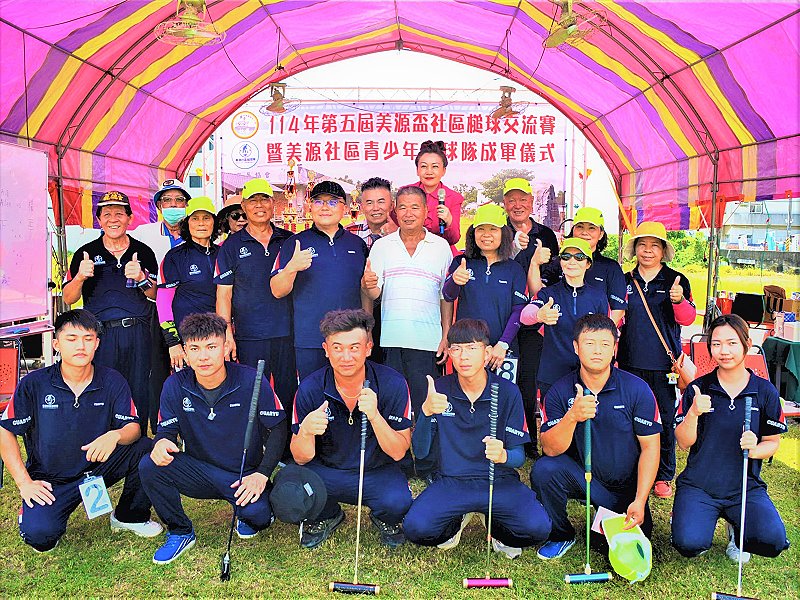 〔記者邱嘉琪、侯姵伃、郭政隆/嘉義縣報導〕由嘉義縣政府、嘉義縣水上鄉公所及嘉義縣槌球協會指導,美源社區發展協會主辦的「第五屆美源盃社區槌球交流賽」暨「美源社區青少年槌球隊成軍授旗儀式」,9/27日於水上鄉美源社區熱鬧舉辦,邀集縣內10支社區槌球代表隊、近百名槌球愛好者齊聚一堂,活動不僅展現社區凝聚力,更體現世代融合的核心價值。