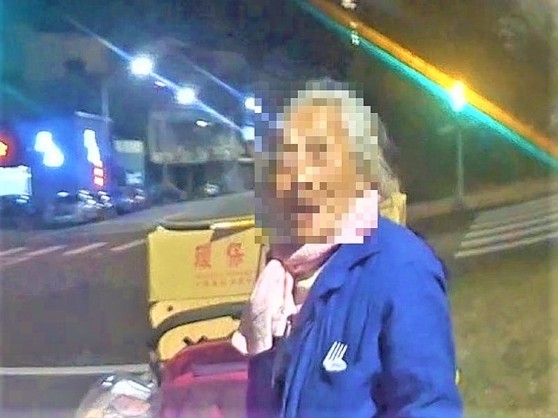警方得知後,確認老婦人無身體不適亦無受傷,便協助老婦人將遺落在快車道上的安全帽撿起,老婦人將安全帽放在道路轉彎處,且告知警方「這是別人掉的,我不