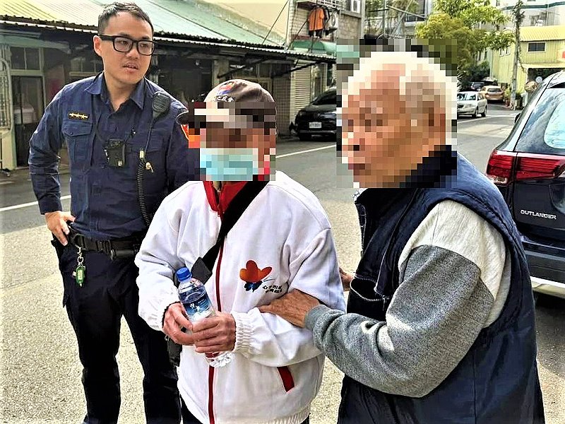 〔記者陳允得/嘉義市報導〕嘉義市政府警察局第二分局北門派出所警員蔡佳汶及詹智展日前擔服巡邏勤務時,突然有熱心民眾帶著1名疑似迷途老翁至派出所請求警方協助,警方見狀立即上前關心詢問;熱心民眾向警方表示,該老翁在吳鳳北路與長榮街口佇立許久,民眾發現便下車詢問老翁,老翁表示因眼力有點退化而無法清楚表達住處,民眾擔心老翁安危於是將老翁帶至派出所請求警方協助。