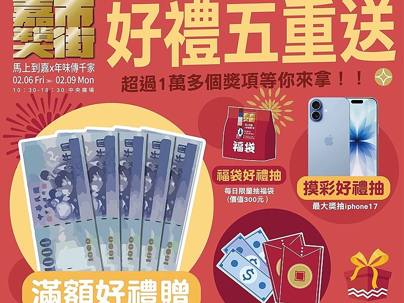 分在於文化路中央廣場熱鬧登場,開幕首日還將推出加碼抽出千元紅包等活動,活動期間還有「好禮五重送」,嘉義市政府歡迎民眾來「嘉」採買年貨,把澎湃實惠年貨帶回家。