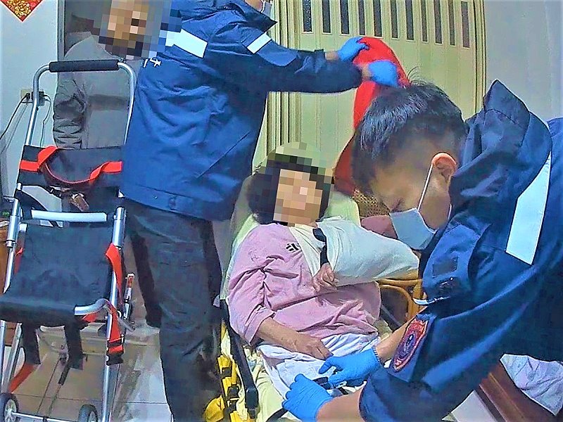 救護人員抵達後,發現李婦身體呈現虛弱無力癱軟在地板上,初步檢視身體狀況並確認其意識清楚,急需送往醫院救治,所幸經過警消合力救護,努力不懈及火速營救,協助將李婦小心翼翼送上救護車,並請家人陪同前往醫院,接受進一步檢查與治療。