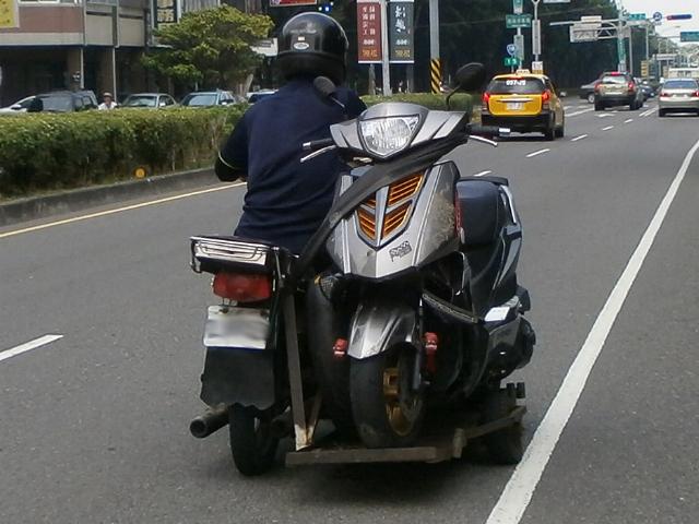 〔記者吳晉輝/嘉義市報導〕相信眼尖的用路人,在22日早上10點40分左右,一定不難發現,這台疑似機車行的改裝機車,奔馳在世賢路上,雖然車速僅保持在30左右,不過搖晃的程度,已足夠讓用路人嚇出一身冷汗。