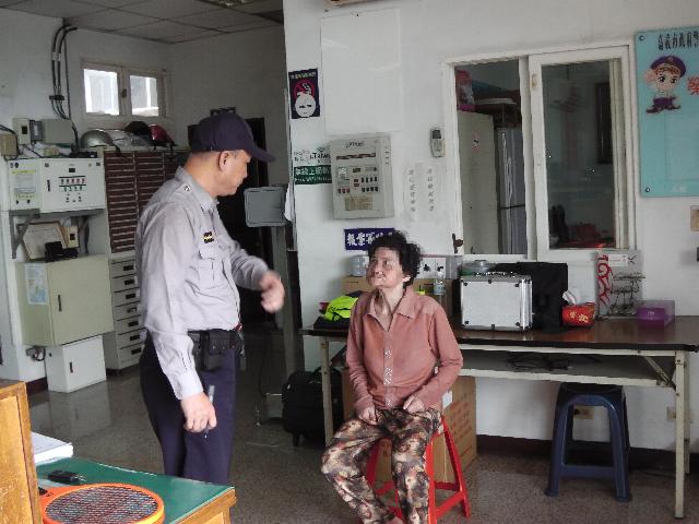 〔記者吳宗義/嘉義市報導〕嘉義市後湖派出所在31日中午13時10分左右接獲民眾報案,指稱一名老婆婆在嘉義基督教醫院前的快車道獨自行走,險象環生,車輛怕撞到老婦人而紛紛閃避,巡邏員警潘明和與龔晉夫獲報後隨即趕往現場並將老婦人帶返派出所,老婦人一時慌張,說不出話來,員警一路保護到後湖派出所安撫老婦人,經過警方關懷與詢問,老婦人只說她的名字叫李○○,並說她只有25歲!由於老婦人身上完全沒有帶證件,於是警方透過警用隨身電腦中的人臉辨識功能終於查到老婦人的真實姓名及身分證字號,透過身分證字號查到其先生何○○及聯絡電話,隨即通知其先生到派出所將老奶奶接送返家。