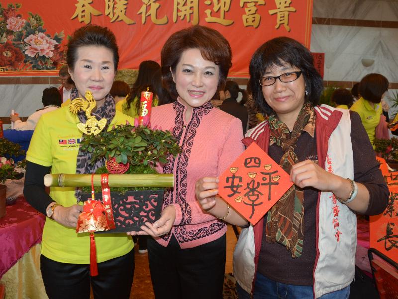 在議會的活動現場,身兼婦聯會主委的蕭淑麗議長親自運筆寫下福字,祝賀在場的來賓及民眾春到福到好運到,並期盼大家在新的一年裡都能心想事成、吉祥如意,如春聯一樣紅不讓、似花藝一般長富貴;蕭淑麗議長表示,新春揮毫是一個非常有意義的活動,透過春聯迎接新年的到來,讓人感受到滿滿的喜氣,配合現場的插花藝術,讓活動充滿吉祥富貴的年味。