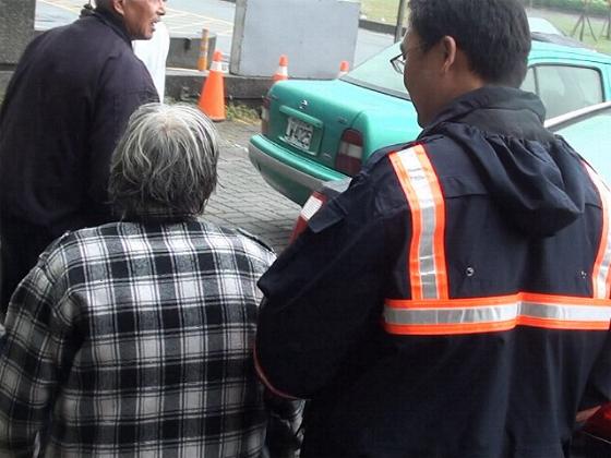 〔記者郭政隆/嘉義市報導〕日前由於鋒面過境,陰雨綿綿、氣溫驟降,路上行人少了許多,卻於嘉義市忠孝、保忠一街口有一位老婦人手提兩大袋物品獨自行走於雨中,顯得格外突兀,而且造成後方來車紛紛閃避、險象環生,此時後湖派出所執行巡邏勤務的巡佐余金土與警員劉昭進見狀,馬上停車關心,耐心詢問為何獨自走到此地,原來是老婦人早上前往嘉基探望其住院的先生後,欲徒步行走回白河的住家,卻忘了回家的方向而胡亂行走,員警詢問其身分資料,老婦疑似有失智現象,致其表達的內容斷斷續續,上文不接下文,為避免老婦人因雨感冒,員警立即請其返所給予協助。
