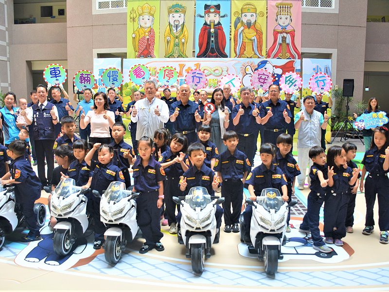在活動現場,可見換上帥氣的警察制服的小朋友們,化身為「小小警察」,騎乘小哈雷機車進行巡邏,體驗一日警職人日常工作,透過實際體驗,學習到交通標誌、號誌的重要性,以及如何在路口停讓行人,從小建立起良好的交通觀念。