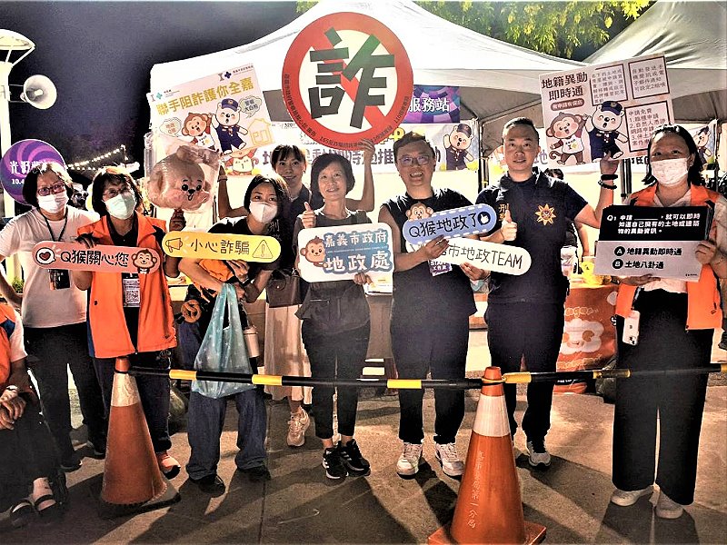 為落實打詐、阻詐工作,也為持續提升全民防詐意識,嘉義市政府警察局與地政處、地政事務所特別在中秋連續假期,在「光織影舞-光影夢境開幕日」及「玉皇宮-中秋天赦日」等2處活動會場入口共同設置