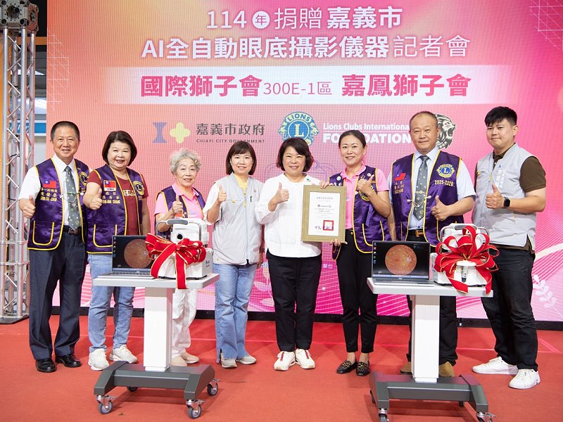 嘉義市長黃敏惠表示,及早發現、及早治療是守護健康的重要觀念,一個人的健康就是家庭、社區乃至城市與國家的健康,為此,市府團隊、專業醫療單位及民間團體長期攜手合作推動健康篩檢與社區服務,早在20年前率先推動整合性社區健康篩檢,並逐步擴增服務範疇,包含針對身心障礙朋友規劃專場,讓不同需求的市民都能受惠,養成定期檢查的習慣,期許未來能持續結合各診所與醫院力量,共同推動初步篩檢工作,提升早期發現與即時治療的效能;感謝國際獅子會300-E1區與嘉鳳獅子會慷慨捐贈2台經衛福部核准、領有醫療器材許可證的AI全自動眼底攝影儀器,嘉惠市民。