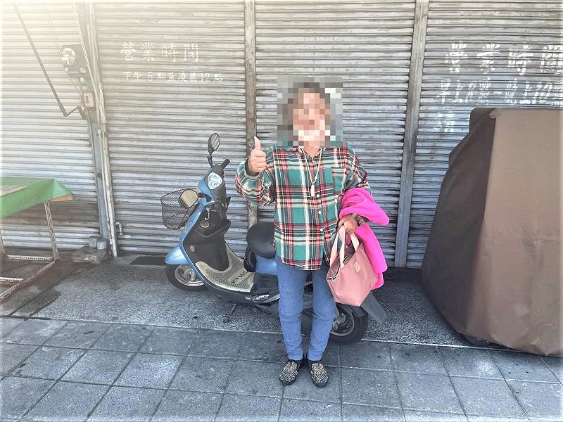 婦尋獲機車的好消息,請到現場確認,吳婦到場後看到自己的機車喜出望外,立刻露出開心的笑容,對自己的疏忽忘記停放位置直呼抱歉,也不禁豎起大拇指為李員